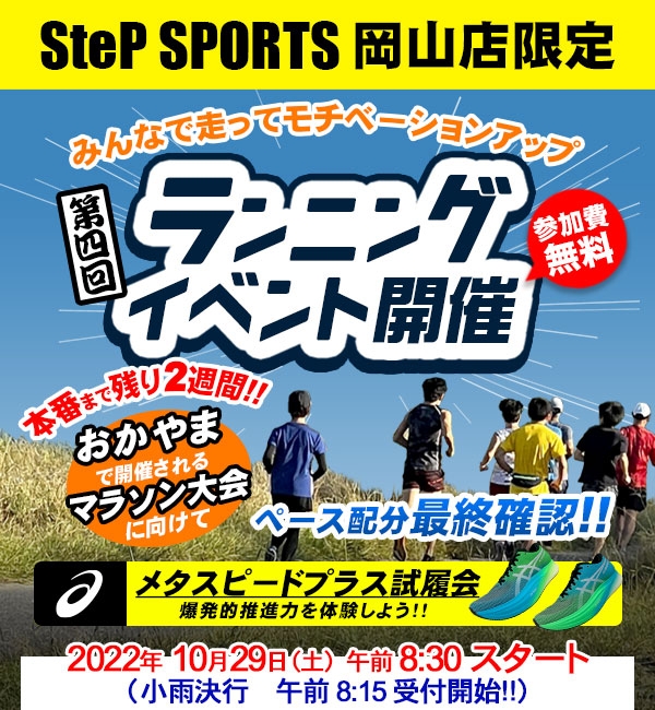 ステップスポーツ岡山店ランニングイベントで一緒に楽しく走りま しょう!