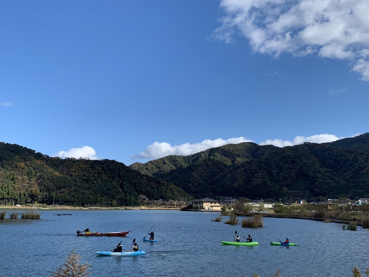 入り江のような地形によって、湖ごとに違う景色が楽しめる三方五湖。カヤックツーリングで、複数の湖をめぐるカヤックツーリングに出かけましょう!400年続く伝統漁法が行われていて、通常では入ることのできない湖も特別に入ります。