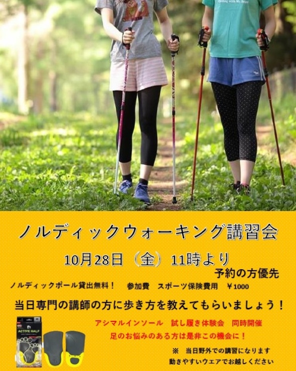 - 11:00 受付開始 人数確認後、講習開始 講習後、店外にてウォーキング 終了後店舗に戻り、各自解散