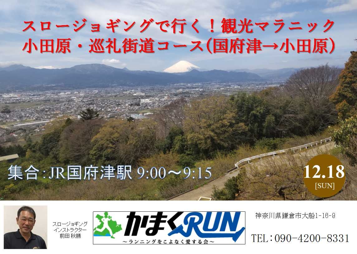 国府津駅を出発して飯泉観音へ続く巡礼街道を通り小田原駅へ向かうコース。スロージョギングですので最初から最後まで歩いても構いません。