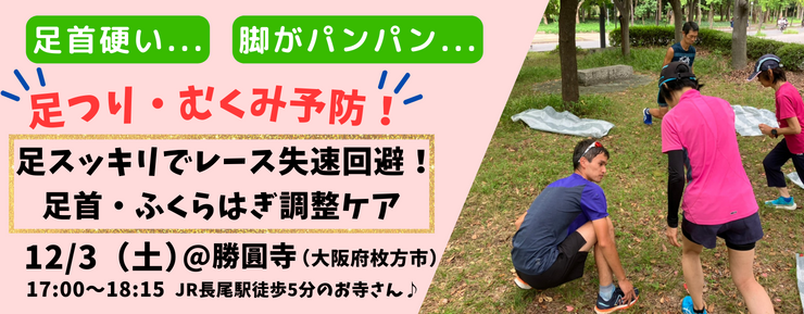 【枚方】足つり・浮腫みを防ぐ!足スッキリでレース失速回避! 足首・ふくらはぎ調整ケア 受付終了