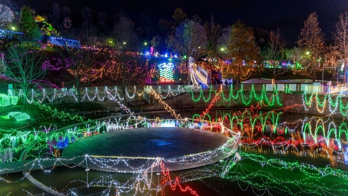 イルミネーションと高さ8mのシンボルツリーがレクリエーションゾーン一帯を美しく飾り、色とりどりの光のページェントが見る人を魅了します。