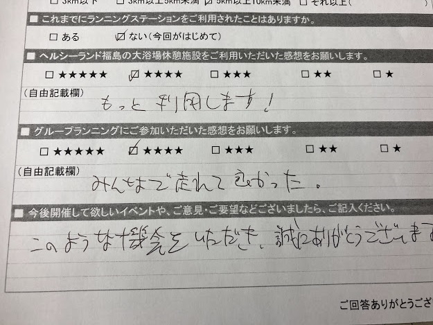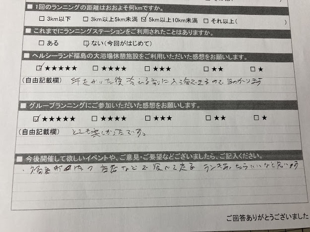 ラン歴の長い方にはランナー仲間との交流を楽しんでいただけたようです。