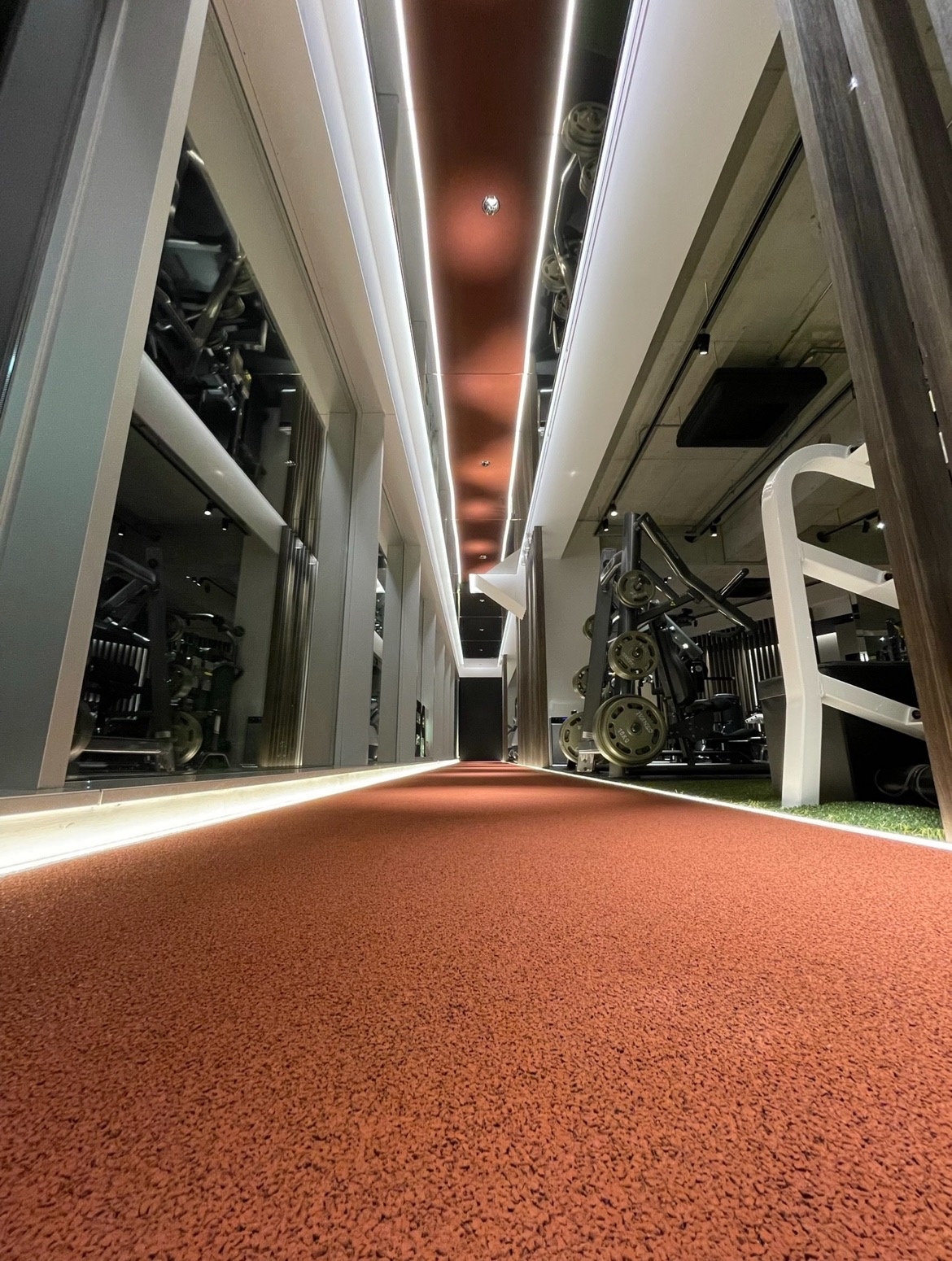 ・ジム内での、トレーナー直接の指導でクアトロコアメソッドを使ったウォーミングアップ。