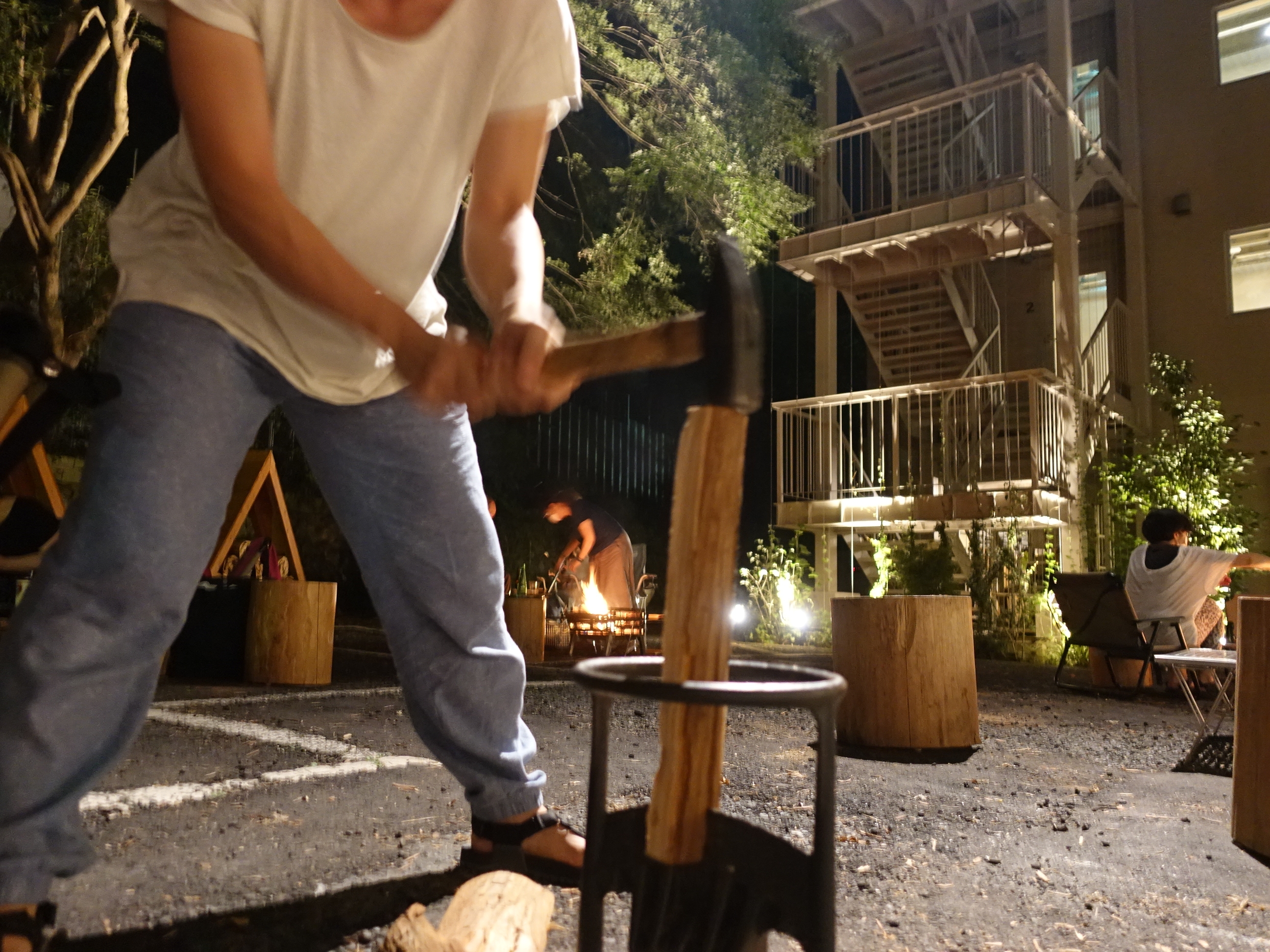 立ち寄りでも焚き火ができるんです。しかも焚き火台や薪はタカオネが準備してくれているという至れり尽くせり。