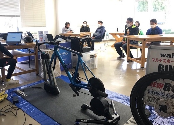 *雨天時は、セミナ―内容を変更し、室内でWahoo KICKRで皆様のライド&ポジションを狩野選手がチェック&狩野選手の各種メソッドを解説。