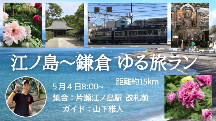 湘南のシンボル「片瀬江ノ島駅」を発着とし、鎌倉の観光名所をゆるりと巡ります。江ノ島電鉄に沿って、海岸沿いの景色を堪能しながらゆっくり走ります。*途中リタイアの方も鉄道ファンの方も江ノ電に乗って、通過駅で合流することが可能です。*片瀬江ノ島駅から鎌倉駅往復が15km程度になりますので、脚作りとしてもお勧めのプログラムです。