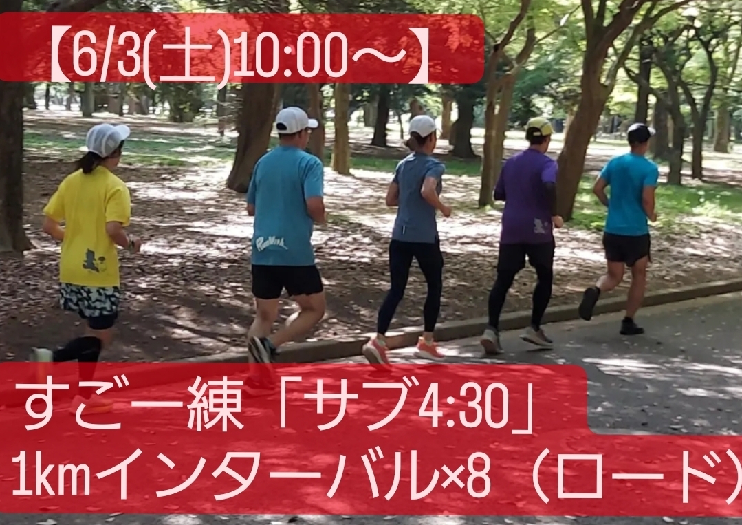 【6/3(土)10:00~】すごー練「サブ4:30」1kmインターバル×8(ロード) 受付終了
