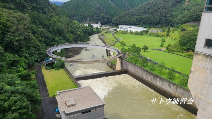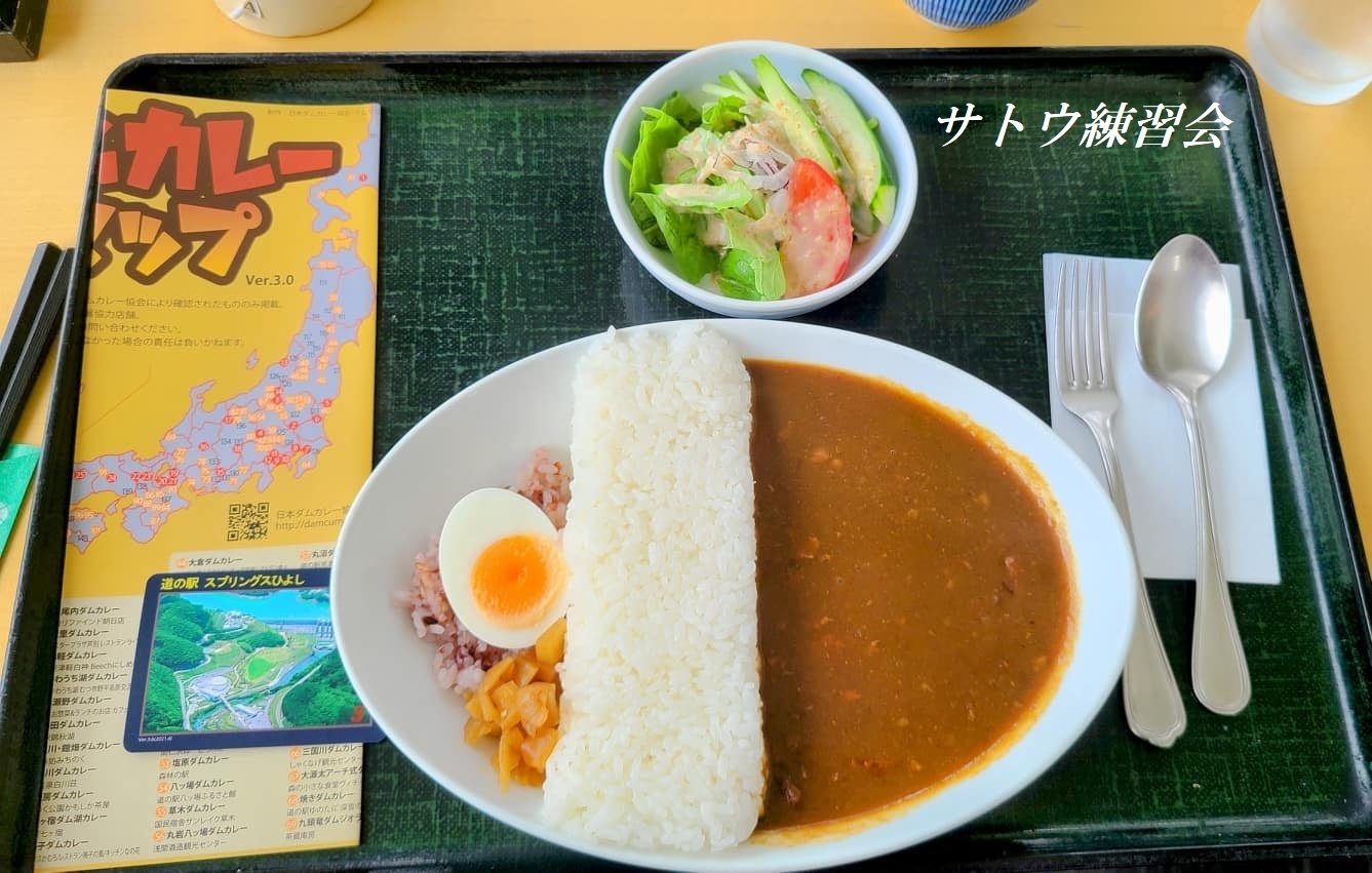 日吉ダムは、巨大で迫力があり、見学施設や広大な芝生広場などが整備されています。すぐ近くにある道の駅「スプリングひよし」には名物のダムカレーもあります。