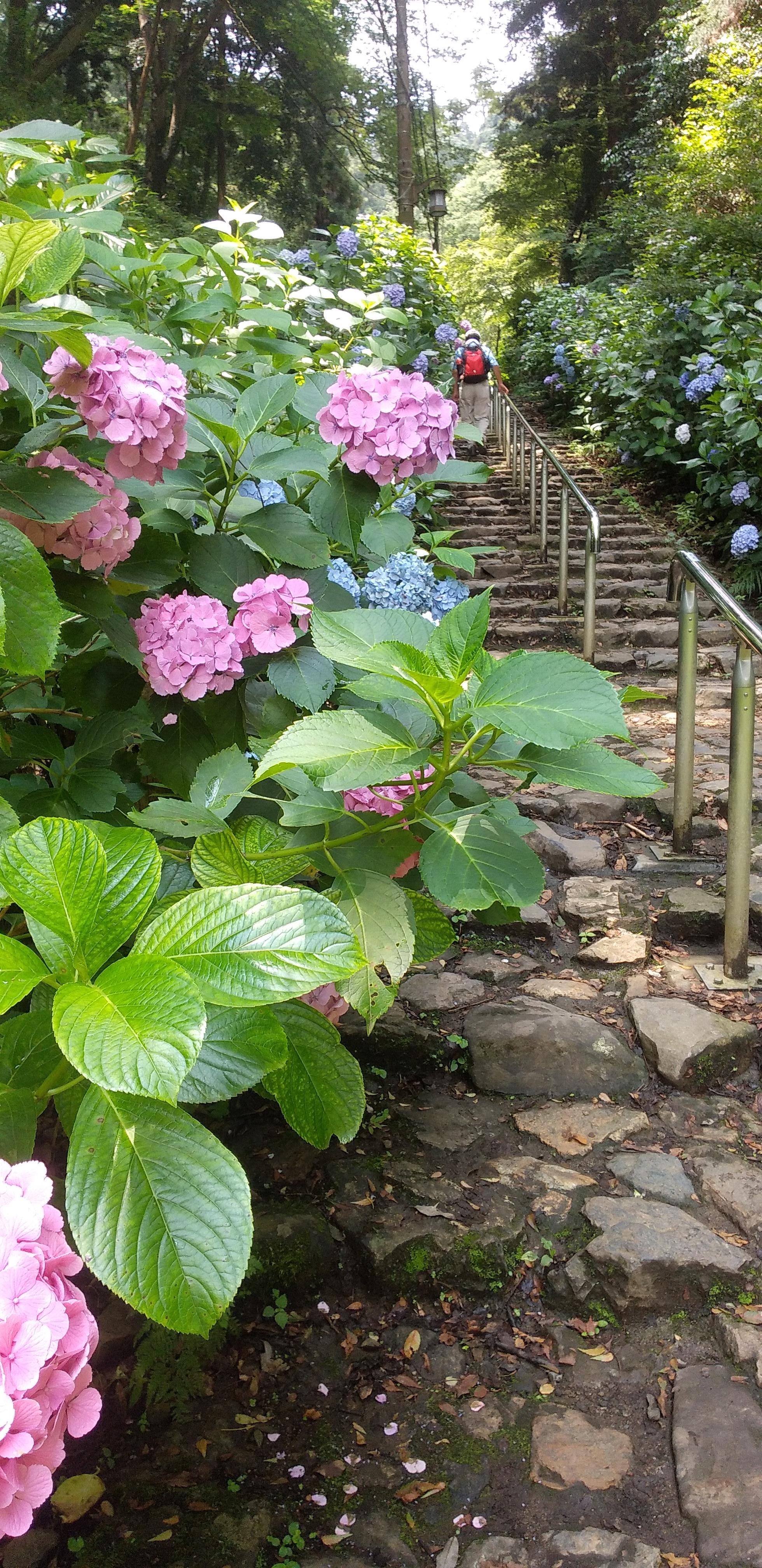 ギリギリあじさいに間に合いました! 客人神社から六角堂までの登ったり降りたり+あじさい坂からの1000段。しんどいけれど花と山とに癒やされる一日。お疲れ様でした!