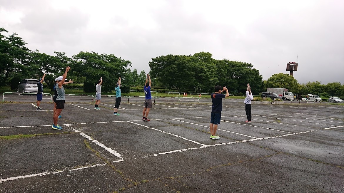 - 9:00-9:15 受付(多目的グランド近くの臨時駐車場) 9:15-10:00体操・動きづくり 10:00-10:30アップjog(2km程度)準備・移動 10:30-(2km+1km)×3 11:20-ダウンjog・体操 11:50-写真撮影後解散