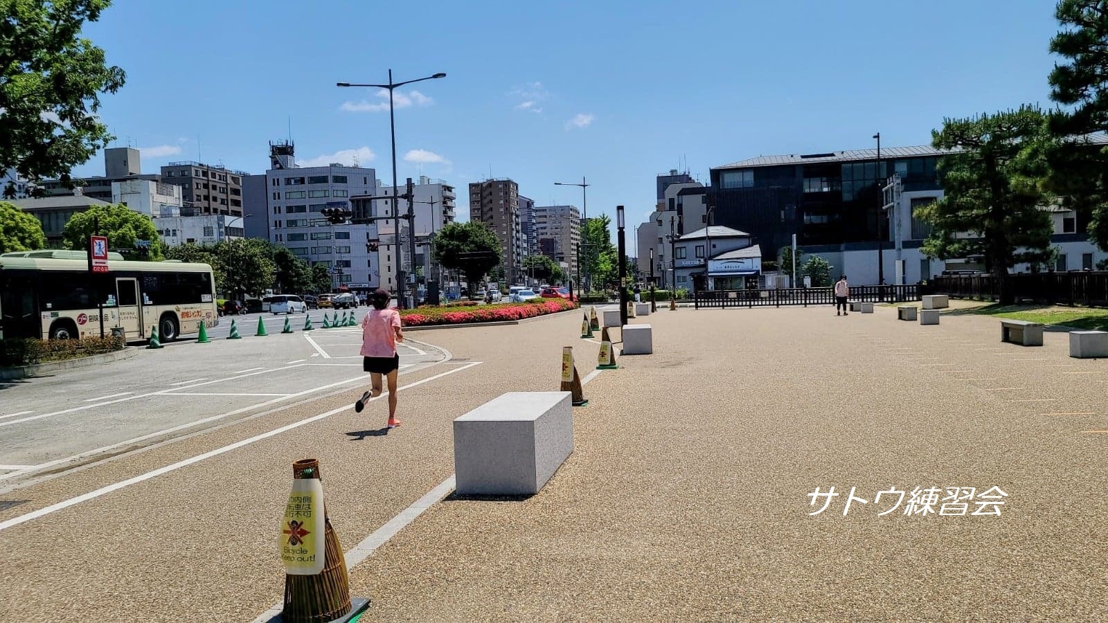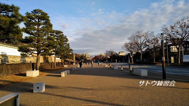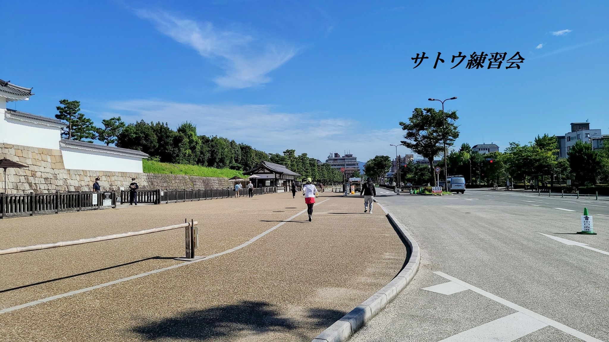 1周1.895㌔の二条城周回コースを走ります。フラットで歩道も広く、走りやすいコースです。