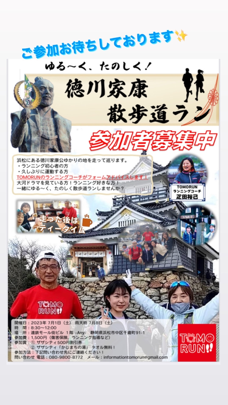 今回は、そんなHOTな場所『浜松市』で、 徳川家康公ゆかりの地を特別解説付きで✨そして、TOMORUN疋田コーチのアドバイス付きで巡るランニングイベントを開催します!!