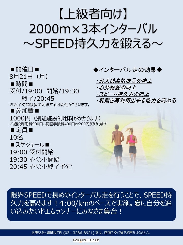 【上級者向け】2000m×3本インターバル~SPEED持久力を鍛える~ 受付終了