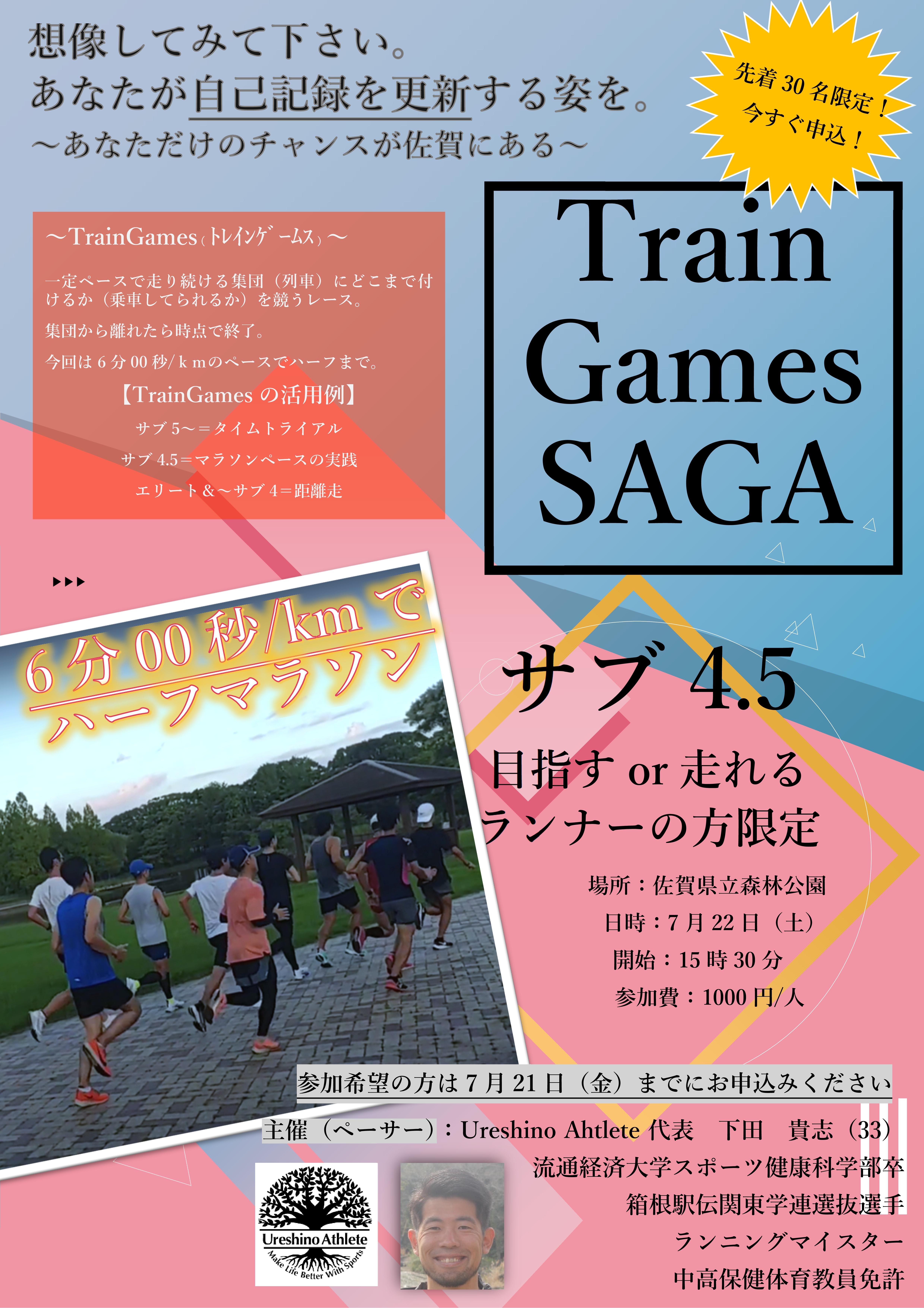 【サブ4.5~サブ5向け】Train Games SAGA(6分00秒/kmでハーフ) 受付終了