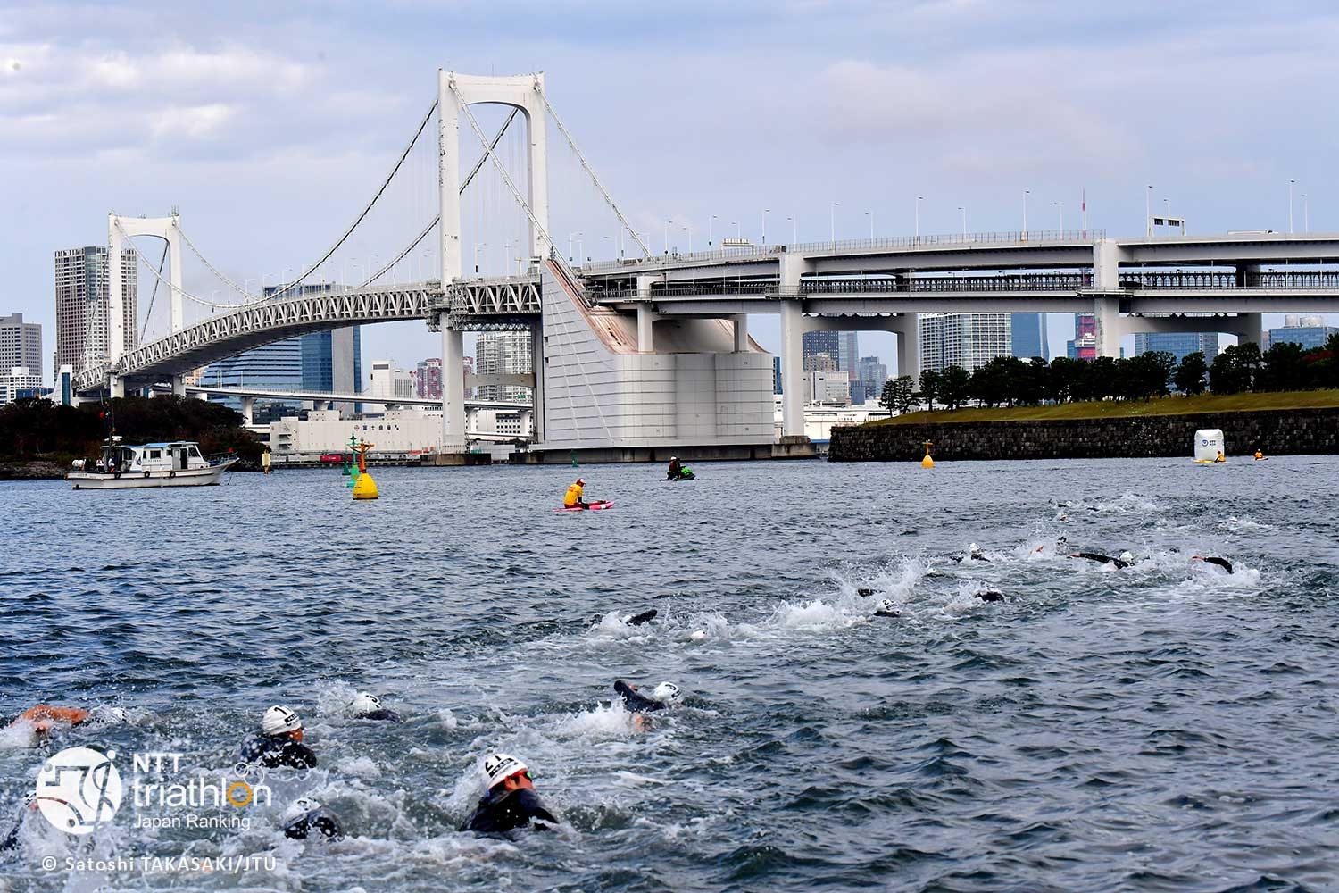 「泳げる海、お台場」を実現するためのお台場プラージュ期間に行うアクアスロン大会。