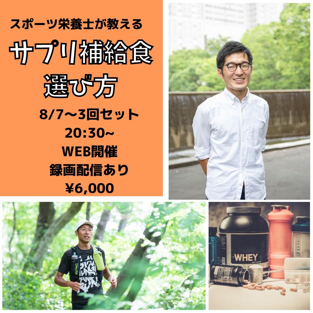 サプリ・補給食の選び方に迷う人へ。しっかり学べば、より効果的に利用することができます。具体的な商品も挙げて、解説します。一緒に解決しましょう!ご質問も受付中です。講師はフル2時間30分の記録を持つ、ランニングに詳しい管理栄養士が務めます。「ランナー全員の自己ベスト更新」を応援しています