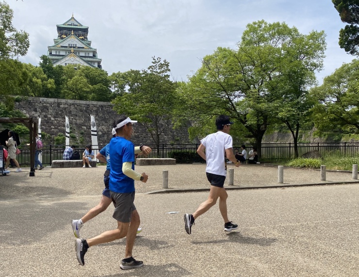 ・着替えてお越しください。この日は近くのランニングステーションRUNNING BASE大阪城はお盆休みなので、練習後に更衣できる一人用テントを用意します。白玉温泉は営業されています。