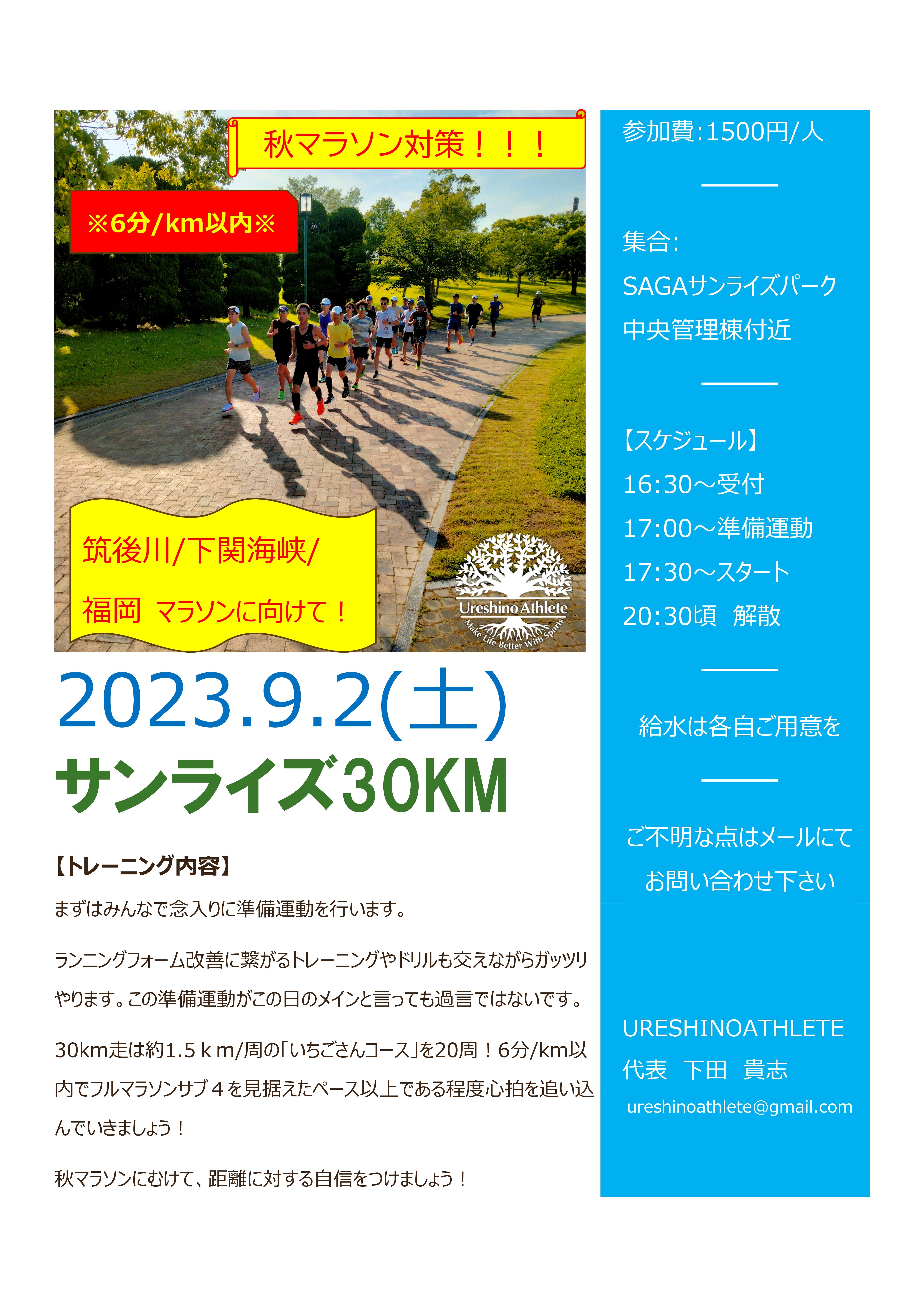 【フルマラソンに向けて】30km走@SAGAサンライズパーク 受付終了