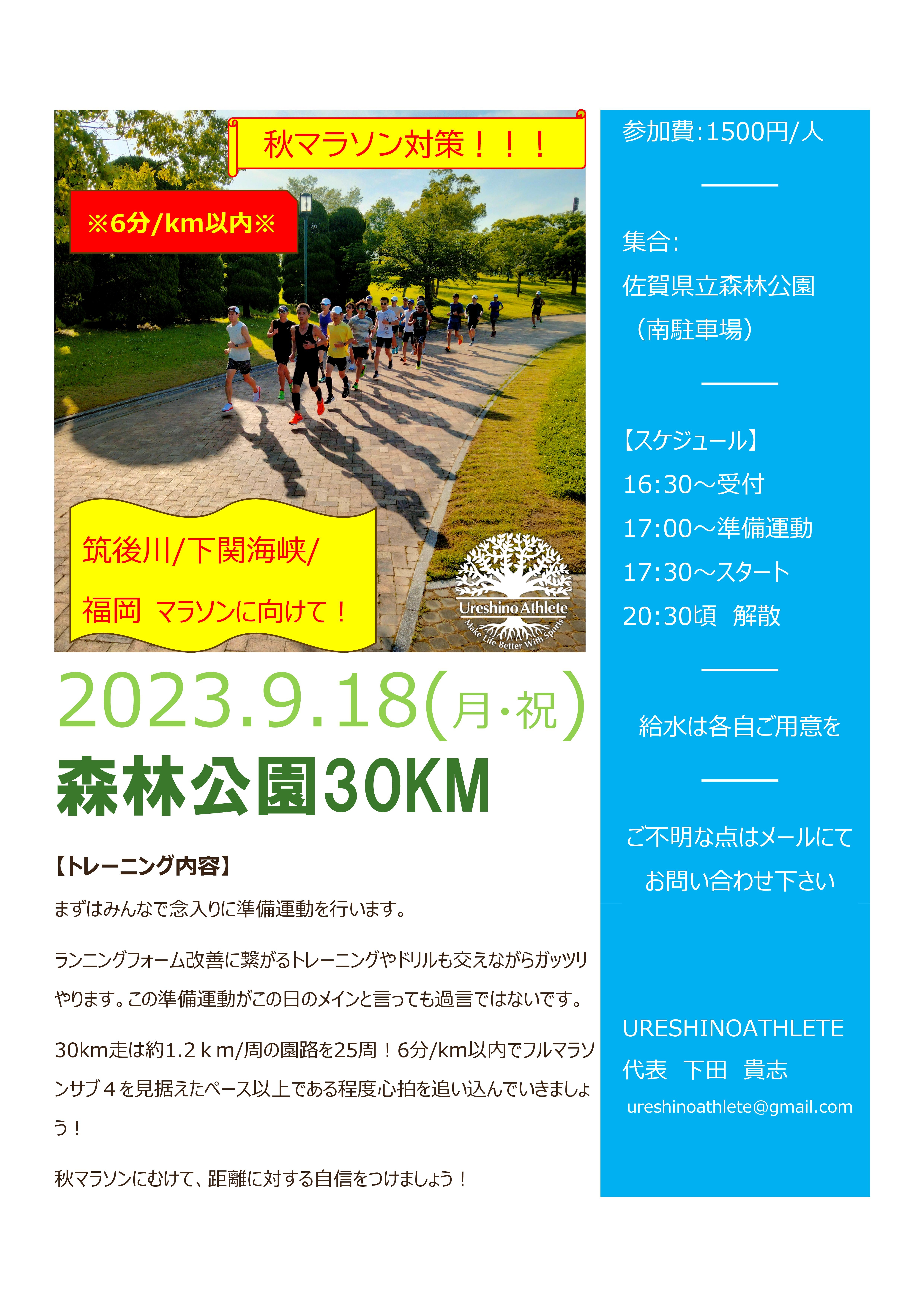 【フルマラソンに向けて】30km走@森林公園 受付終了