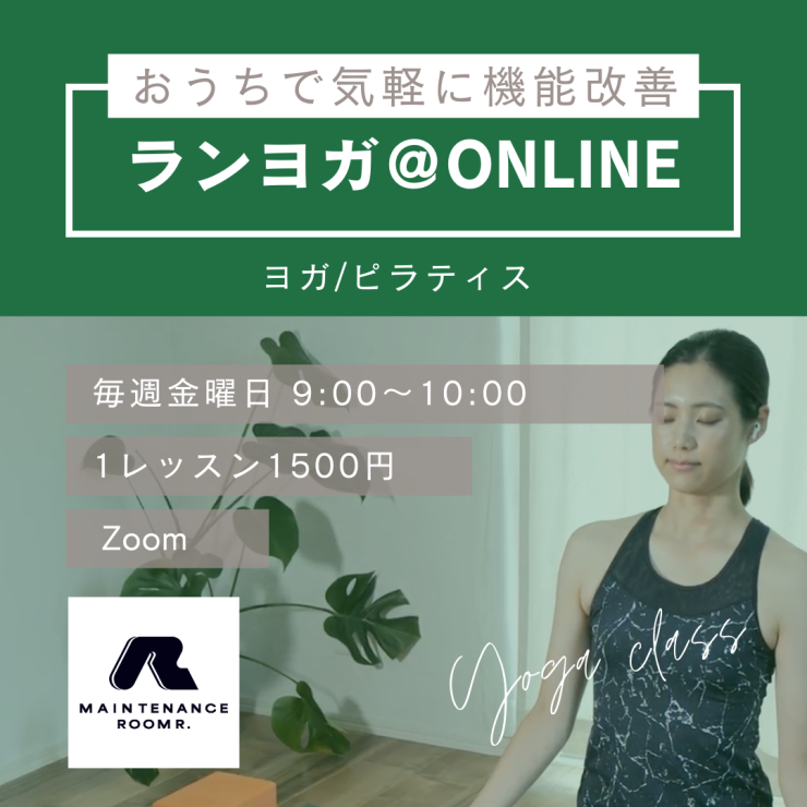 ヨガピラティスを通じた「痛みなく快適に動ける身体づくり」ができるランヨガ@ONLINEクラスです。