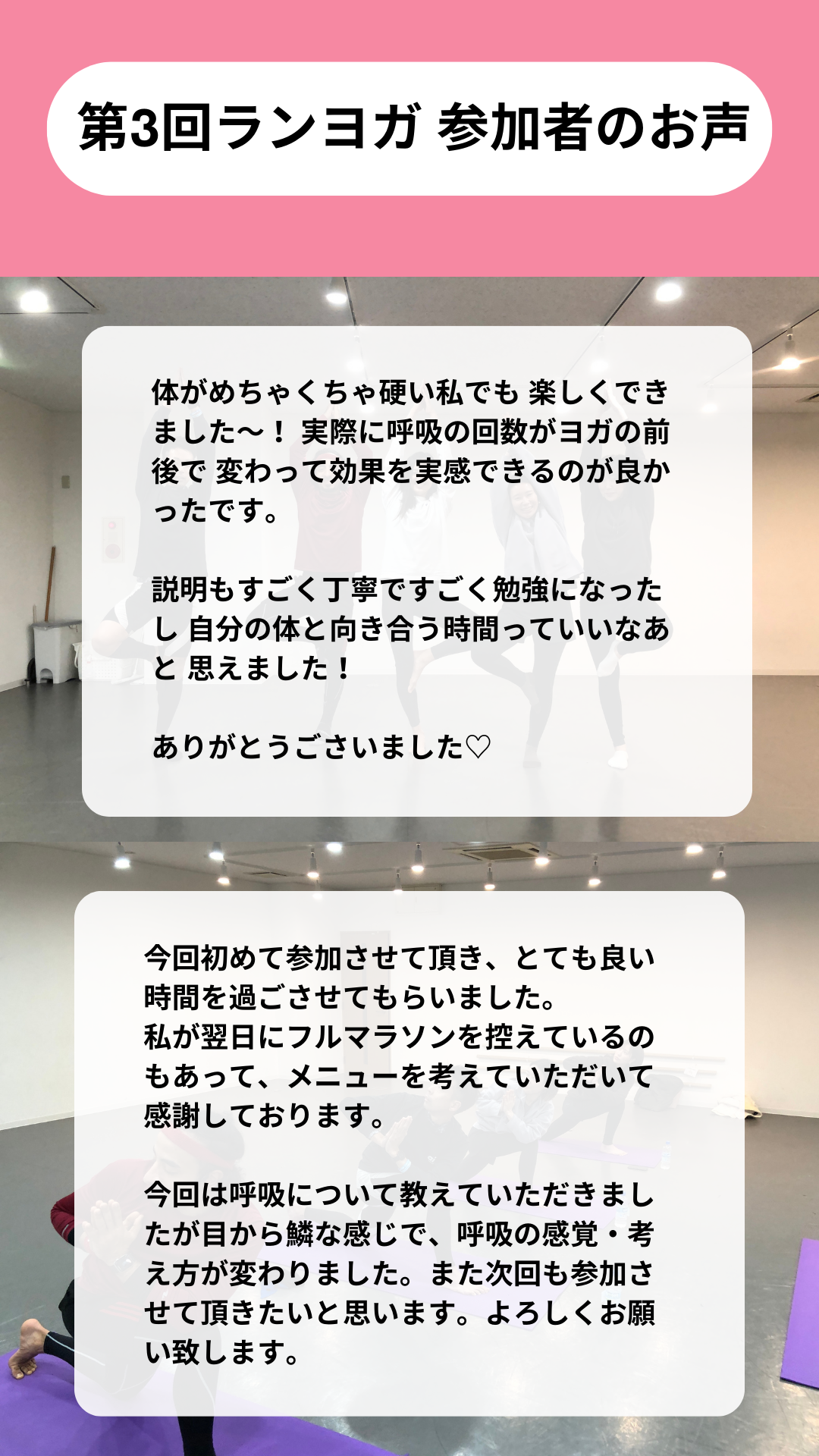 市民ランナーの方から、ヨガやピラティスが初めての方、運動が久しぶりの方でも楽しんでいただけます。
