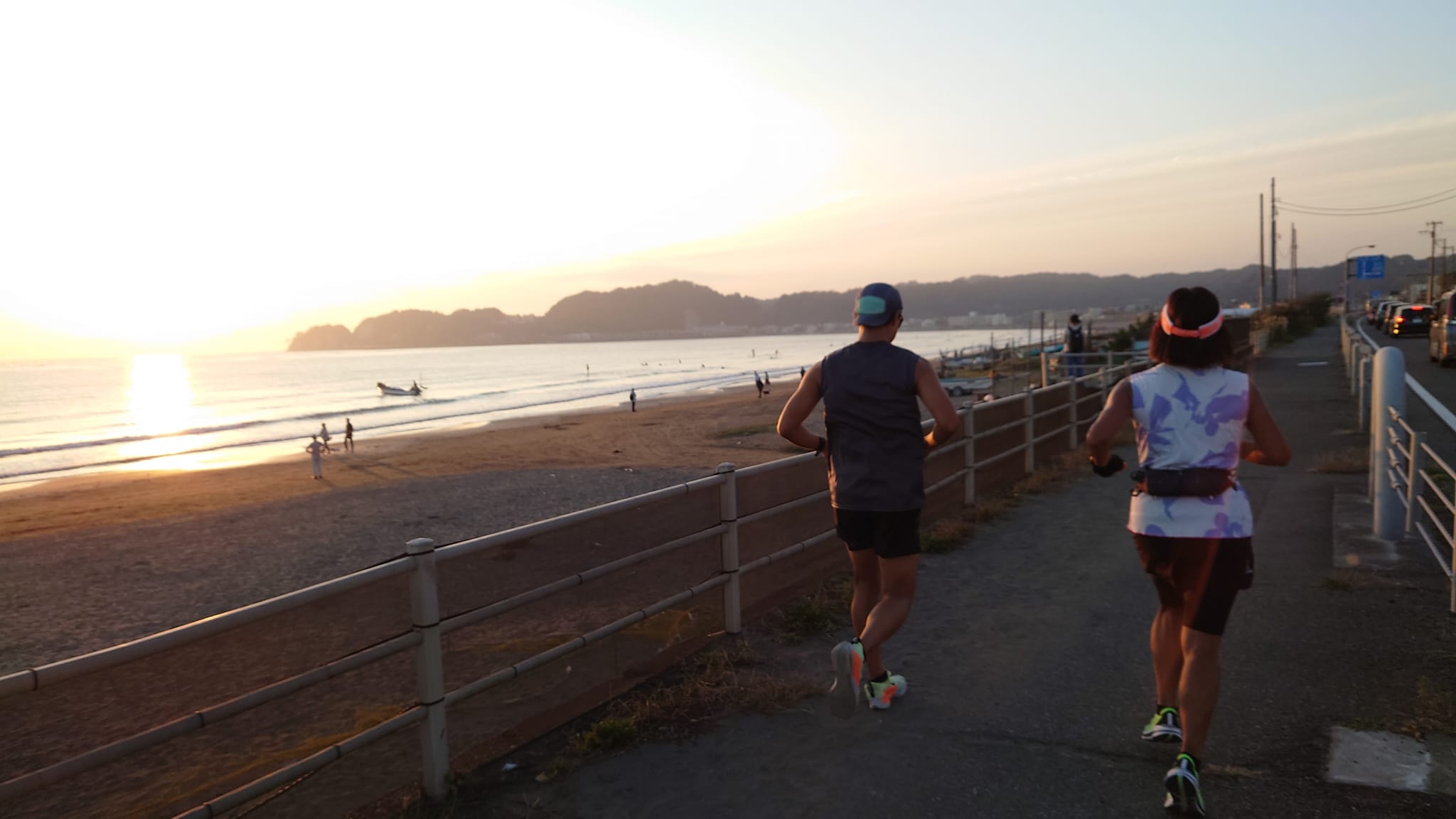 海岸沿いロード 約1.5kmの折り返し(往復3km)を2時間、自身のペースで走ります。発着点にエイドステーションを準備します。補給休憩可能。