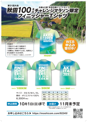 秋田100キロチャレンジマラソン大会 フィニッシャーTシャツ事務局