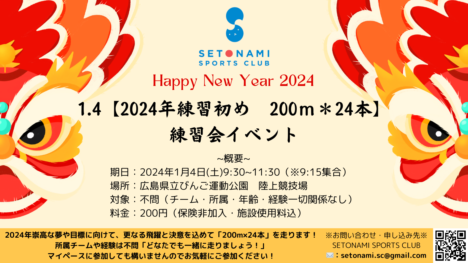 1.4【2024年練習初め200m*24本】練習会イベント 受付終了