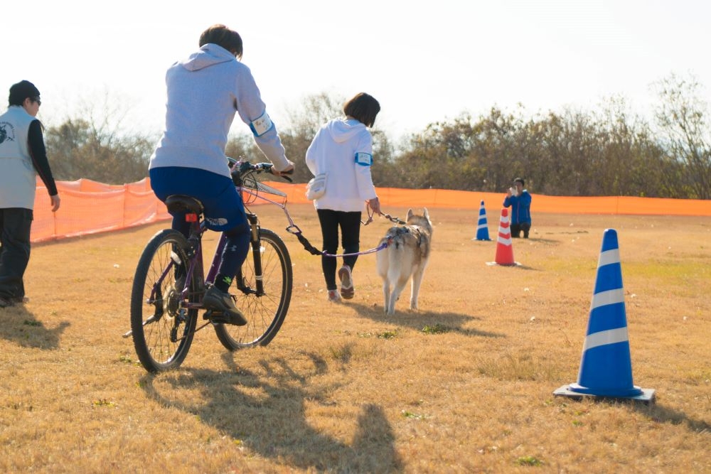 一般的な自転車より頑丈なMTBを使って、犬の力やスピードを最大限に生かすために微妙な力加減でブレーキレバーを操り、犬が最も走りやすい負荷をかけながらゴールを目指します。