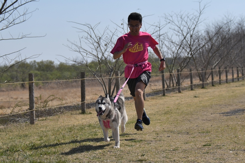 バイクジョアリングで犬が引くのは自転車ですが、カニクロスでは人を引いて走ります。バイクジョアリングよりも犬の力を身体で直接感じることができます。