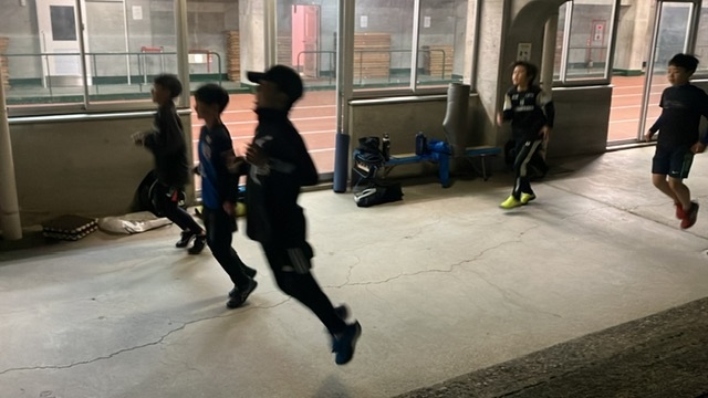 中距離(1km前後)の走りの練習も無理のない範囲で実施 。*特に寒い時期は1kmなどの走りの向上練習も実施