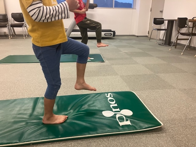 ヨガマットを用いてうまく走れる様になるためのトレーニングやストレッチなどを実施しています。*毎回10〜20分ほど実施