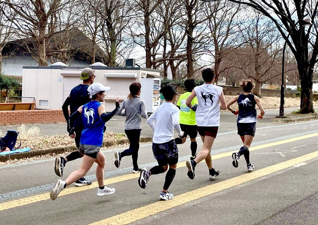 ペーサー付きです。ウォーミングアップでは、走りの基礎となる動き、ケガ予防のためのドリルをコーチが丁寧に指導します。レース調整などを考慮し途中離脱でも構いません。本練習後は流れ解散です。