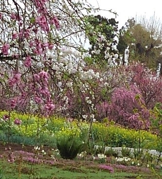 〇みどころ/「花桃の隠れた名所を散策したい」と手書きの簡単な地図を添えて会員から要望されました。行事 選考員会に提案し採用された後、すぐに下見をし、このコースを設定しました。枝垂桜で有名なお寺と花桃の名 所2か所を巡ります。ゴール近くの花桃畑は私有地で見つけにくい所にありますが見応えあります。
