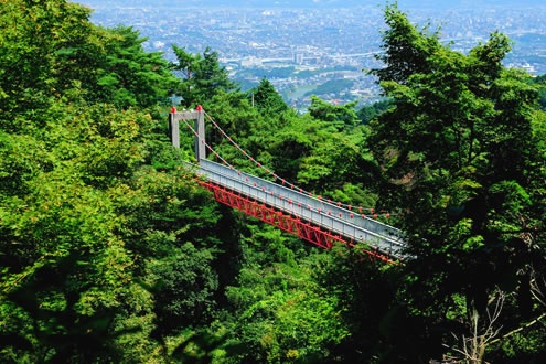 市街地からほど近い標高597mの油山。その麓に広がる「油山市民の森」は、その地形を生かして草スキー場、キャンプ場、つり橋や滝などもあり、豊かな森に囲まれた散策コースが縦横に走り、市民の憩いの場となっている。この園内の遊歩道を利用して、ぐるりとまわる周回コースは起伏があり、四季おりおりの自然を楽しみながら、よいトレーニングができる。市街地から海まで見渡せる展望台や、ツツジが楽しめる花木園などもあるので、ランニング前後に存分に楽しみたい。