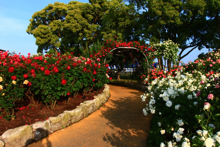 駕与丁(かよいちょう)公園には駕与丁池を囲むように、粕谷総合体育館、かすやドームをはじめ、水鳥観察の小屋、グラウンド、アスレチック公園などがある。池の周りの遊歩道は1周すると4.2195?。10周するとほぼフルマラソン。途中の南北に架かる橋を渡り、東半周は1.978km、西半周は1.878kmのコースもあるので上手に選んだり組み合わせて走ろう。園内のバラ園では、180種、2,400株が栽培されているので、バラの季節には立ち寄ってみたい。