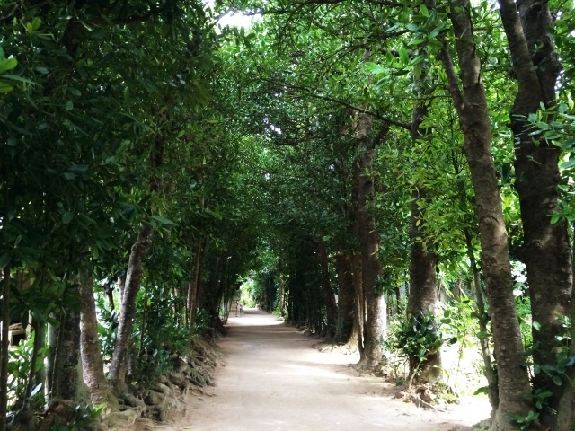 ダイナミックな大自然が特徴の沖縄北部エリアのコースが多い中、気軽に走れる短いコース。 海洋博記念公園の中を抜けて、エメラルドビーチから本部半島先端の備瀬崎から「フクギ並木」を走る。 2万本のフクギのトンネルは、木々の葉っぱの間から差し込むやさしい陽射が、疲れた身体を癒してくれる。