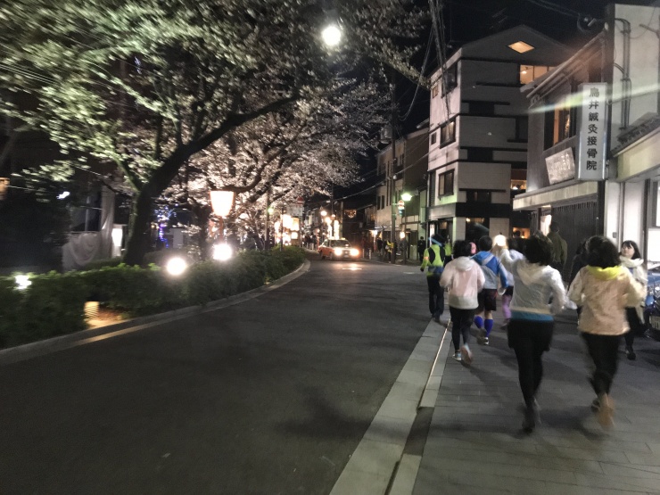明るい街灯はありませんが、車道や料亭の明かりがこぼれ、スロージョグなら夜間でも安全に走れます。特に夏は、納涼床を見上げながら走れる西側の御池通りから四条通までは京都ならでは趣を味わえます。