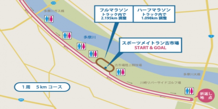 【スポーツメイトラン】川崎古市場(多摩川河川敷)コース (ハーフ・ハーフリレー)