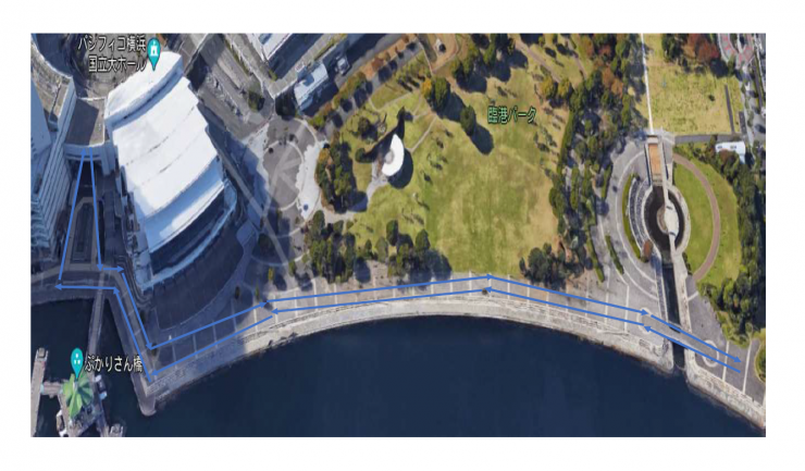 臨港パーク内 特設コース 海沿いを走る爽快なコースとなります。 3年生以上は一人1周0.75km×2周 チーム合計6km 2年生以下は一人1周0.75km×1周 チーム合計3km