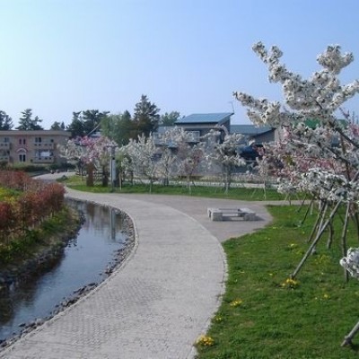 津軽平野のほぼ中央に位置し「日本一のりんごの里づくり」を目指す板柳町。豊かなりんご園に囲まれ、春には真っ白なりんごの花、秋にはたわわに実った真っ赤なりんごたちの薫りを感じながら「りんごの里板柳」ならではの道です。津軽の秀峰津軽富士「岩木山」と津軽の母なる川「岩木川」を望み、アップルモール(遊歩道)を歩きながらモニュメントで町の歴史を探索することができます。