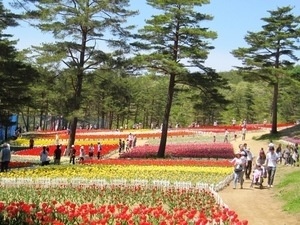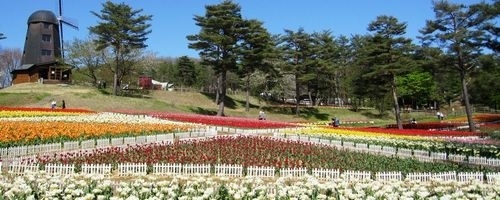 県北に位置し、『雑穀の里・軽米へようこそ 軽米にはヒエ島という楽園があるらしい 花と緑があふれ人が輝くふれあいと健康文化の町』がキャッチフレーズの町です。雪谷川ダムフォリストパーク・軽米は、森林とダム湖が織りなす美しい景観を生かした水と緑の自然公園です。5月上旬から中旬にかけて、高さ16メートルの風車展望台のもと、約40種類15万本のチューリップが咲き誇ります。ダム湖に架かる全長154メートルの吊り橋や5棟のキャビンを備えたキャンプ場など、シーズンを通じて楽しめるリゾート地です。