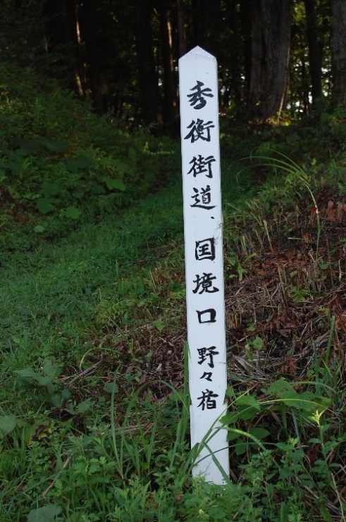 秀衡街道(平泉〜北上〜横手間)は、平安時代末期(12世紀後半頃)に陸奥と出羽を結んだ全長約80kmの古代道路で、平泉藤原三代秀衡と黄金文化にちなんで名づけられたものです。当時は、山伏たちがこの街道を通り平泉まで金を運んだといわれています。奥羽山脈のほぼ中央部を、北上川支流の和賀川と雄物川支流の横手川が浸食した、その山あいの横断谷を縫うように結ばれています。国境口の野々宿と黒沢間は分水嶺になっています。江戸時代中期、高橋子績が著した「澤内風土記」には1868年戊辰戦争で南部藩の将兵1500人が陣取ったとかかれています。国境警備のために掘った空堰があるなど、平安時代から明治まで歴史の変遷を伝える歴史の道となっています。