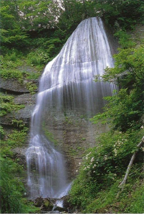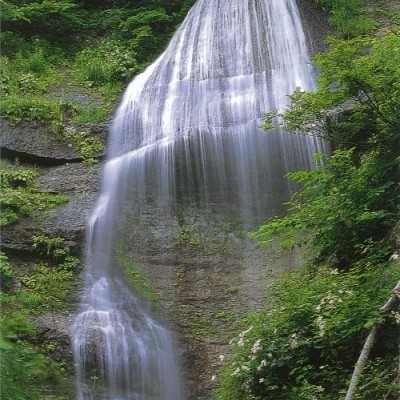 「白糸の滝」「姥滝」「降る滝」をはじめ、大小7つの滝があり滝めぐりが出来ます。「白糸の滝」は落差が40m、幾十条幾百条もの糸のように流れ落ちる滝の飛沫が虹色の光彩にうつくしく輝きます。また、奥の滝となる「降る滝」は、落差が50m以上あり、辺りの静寂を打ち消す滝の轟音はまさに圧巻です。雪解けから降雪(6月〜10月)時期まで楽しめます。林野庁風景林指定のブナの原生林で、夏は日差しを遮り涼しげな水しぶきが舞う滝でマイナスイオンをたっぷり浴び、秋は色鮮やか紅葉の風景を満喫することができます。