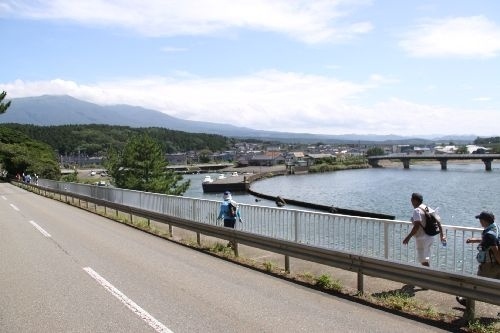吹浦駅から鳥海山大物忌神社吹浦口の宮を見て、吹浦漁港からの日本海の絶景を楽しみます。松尾芭蕉の句碑・十六羅漢岩・釜磯海水浴場湧水群・湯の田温泉・滝の水湧水・神子の水湧水を見ながら平成27年に国名勝に指定された三崎公園に行き、三崎公園内を散策します。三崎公園には松尾芭蕉の歩いたおくのほそ道を歩くこともできます。また、三崎公園からは、海沿いの歩道を吹浦まで戻るコ−スと羽後交通のバスで象潟に行き松尾芭蕉ゆかりの風景を見ることもできます。