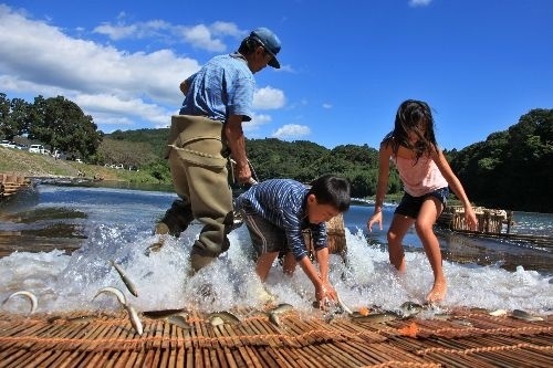 茂木町は栃木県の東側、八溝山系に位置する中山間地域です。北部を流れる那珂川は 「関東の四万十川」と例えられる清流で、茂木町にある「大瀬観光やな」は日本最大級の鮎のやな場です。この那珂川沿いにそびえ立つ鎌倉山は、晩秋に雲海が見られる事で知られ、展望台から見下ろす山々と那珂川の絶景に心奪われます。やな場から那珂川を渡った台地ではそばの栽培が盛んで、秋にはそばの花観賞や、「そばの里まぎの」では地元産そば粉のそば料理を堪能することが出来ます。絶景と美味しい料理、視覚と味覚を満足させるくれます。