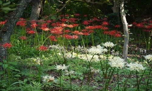 自然林や山野草、植木畑の絶景が広がる、まさに、世界に轟く「植木のまち 安行」が満喫できるコースです。また、お灸のお寺として有名な金剛寺や、興禅寺本堂の裏手では遊歩道のある雑木林で十三佛の石像を探すのも楽しみです。秋には見事な紅葉や真っ赤な彼岸花が群生する風景は幻想的でもあります。