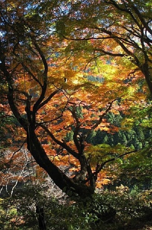 いろは楓の巨樹 カエデ科のイロハカエデで、樹齢200年の巨樹が三本。11月中旬頃が見頃であり、行き交う人々の目を楽しませてきた。