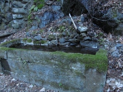馬の水飲み場 この道を馬で行き交いをしていた頃、この場所で馬を休ませ、馬方の衆は茶屋で一服していた。一杯酒もあったとか。